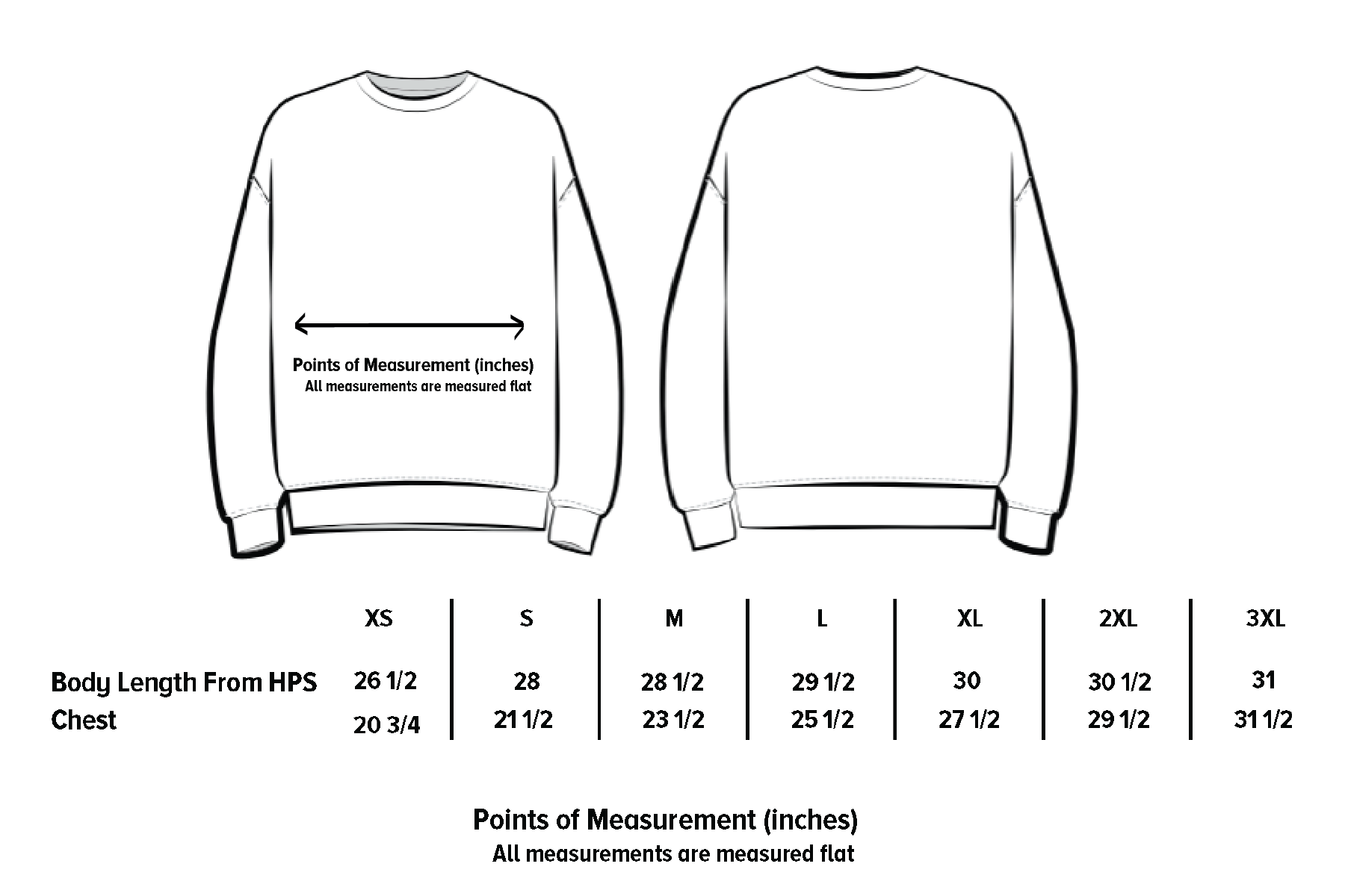 Crewneck Size Guide
